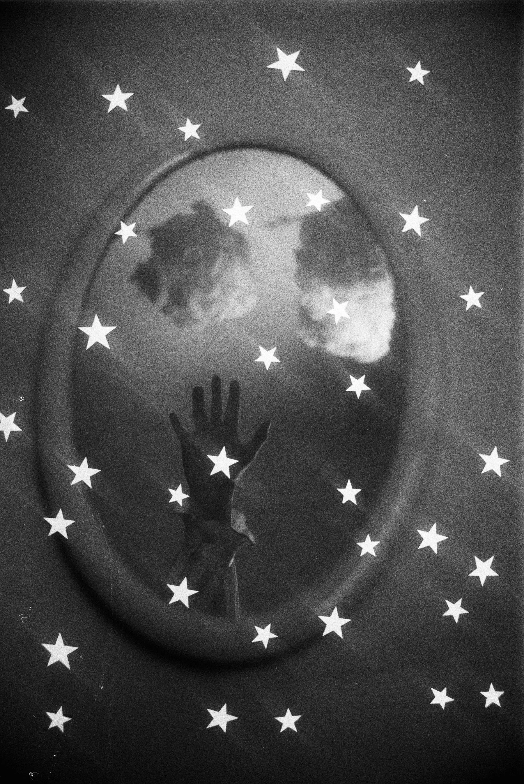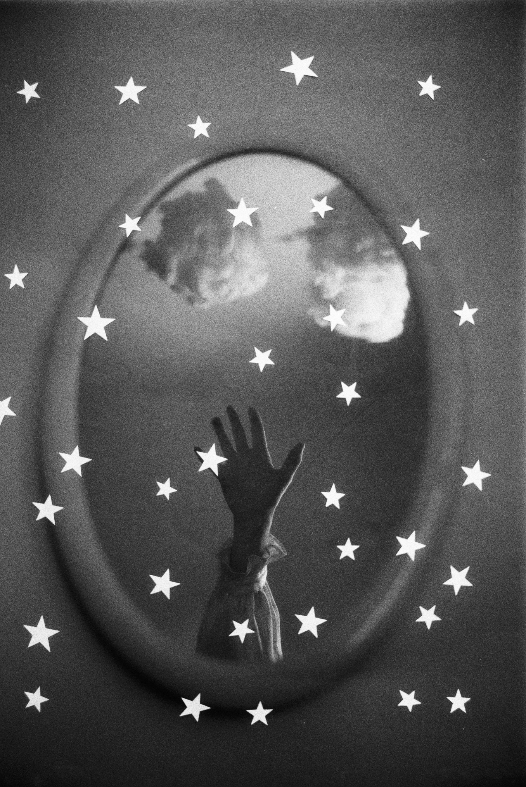 Double exposure - I cut out tiny paper stars and placed them on black paper to get this effect. The mirror is on the wall. Here I didn’t use any filter.